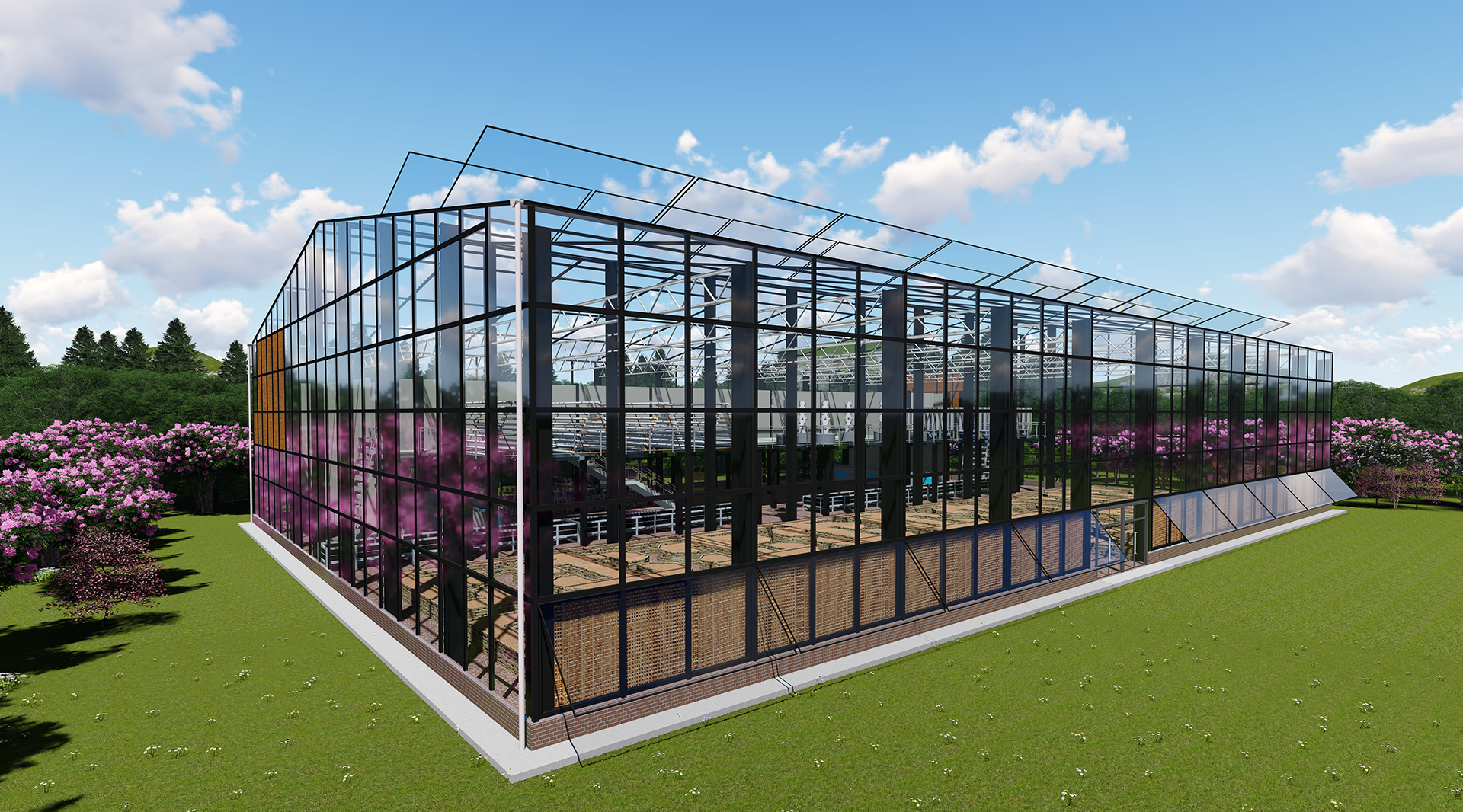 (4)建设占地面积1818平方米的多层复合材料标志温室1个,主要用于地标、种源展示及交易、永续农业技术展示、观光、报告交流、科学研讨、教学研究、院士工作站点等。